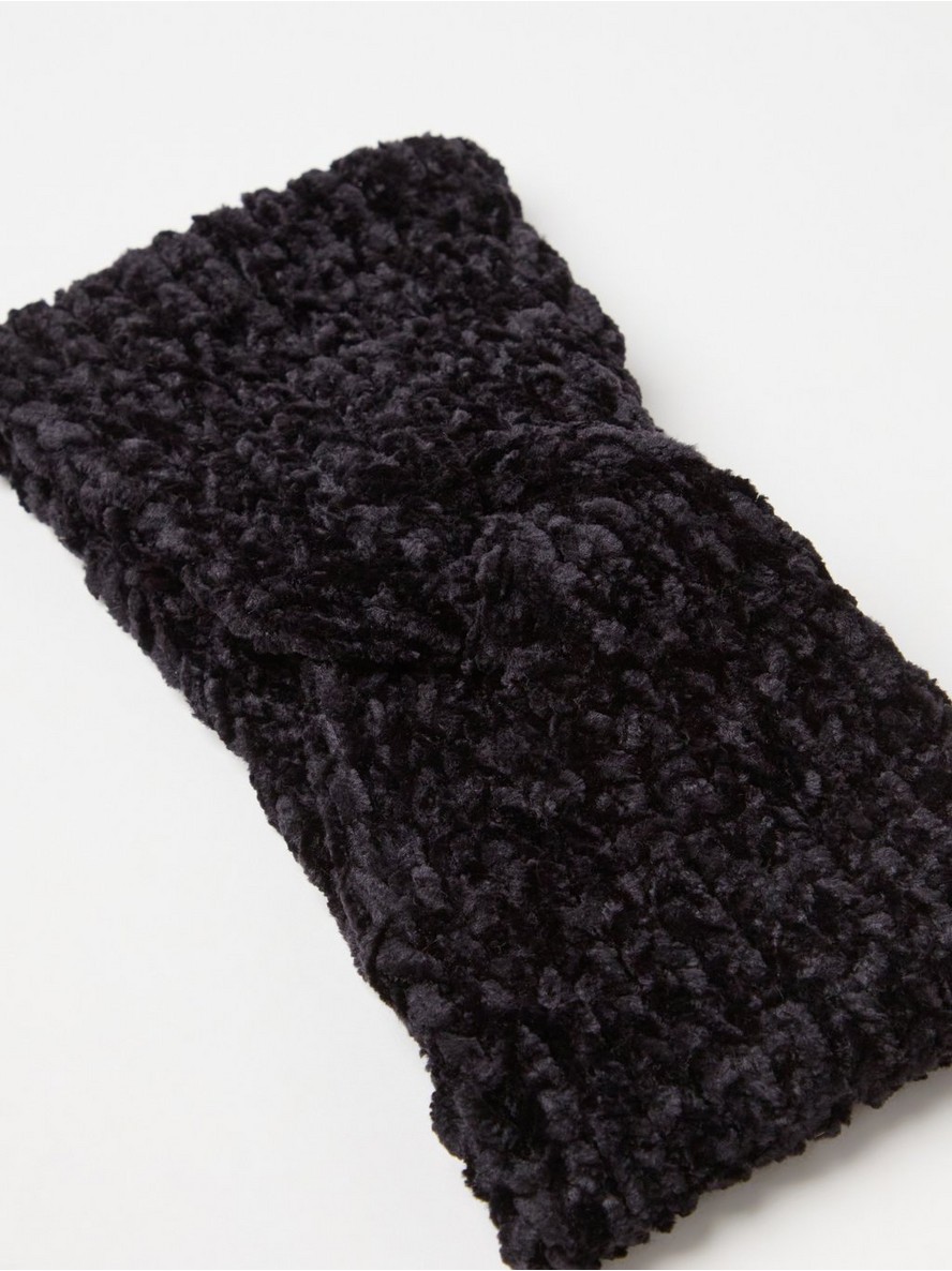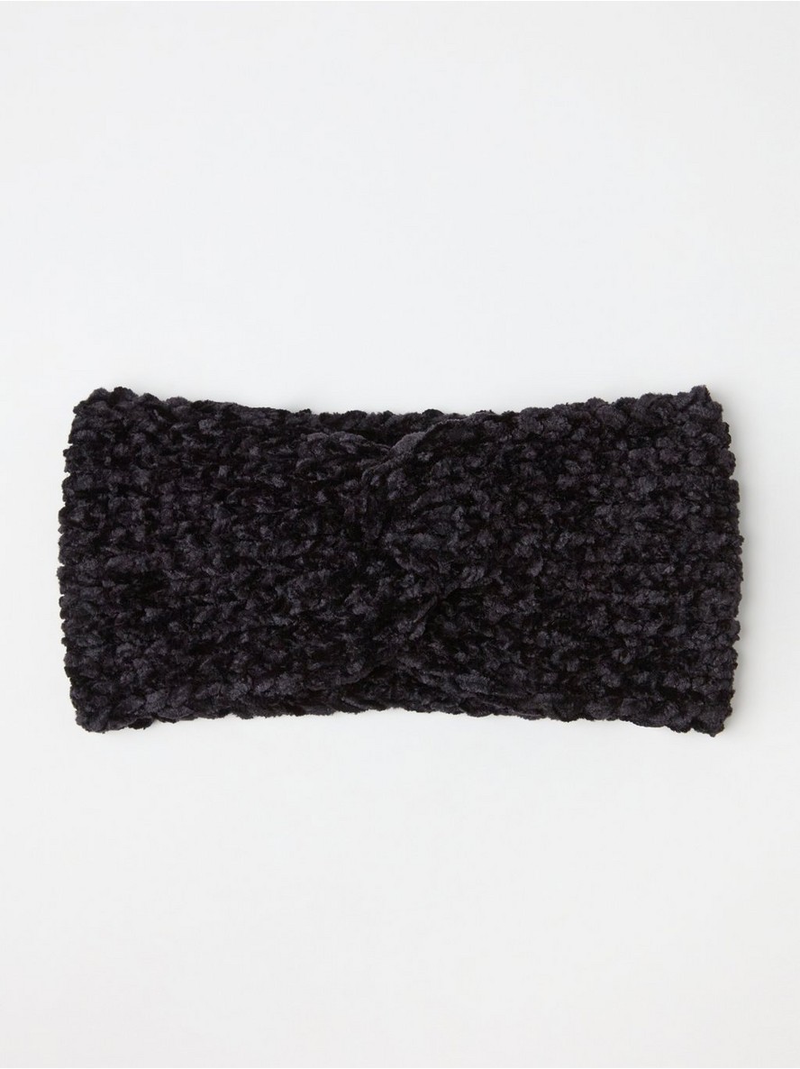 Pletena traka za glavu sa detaljem čvora sprijeda i elastičnim prianjanjem.