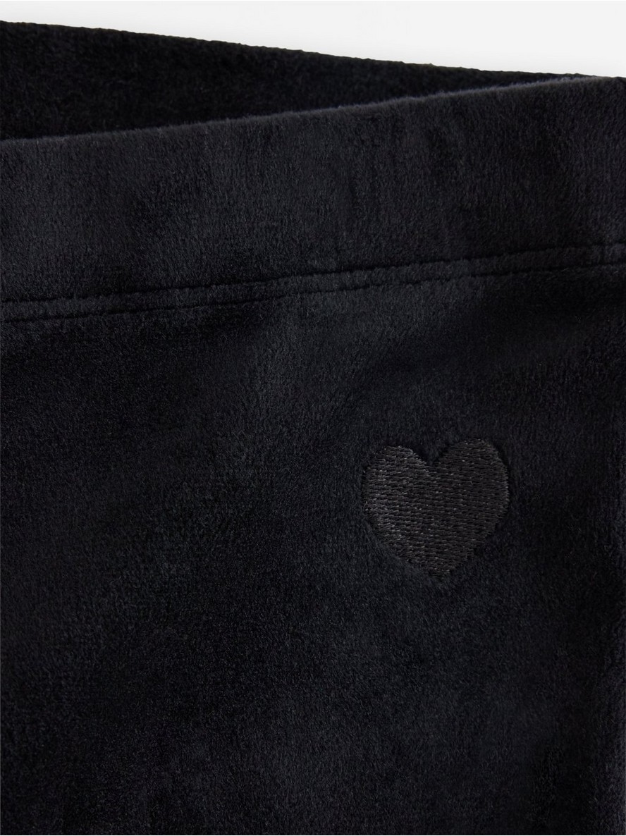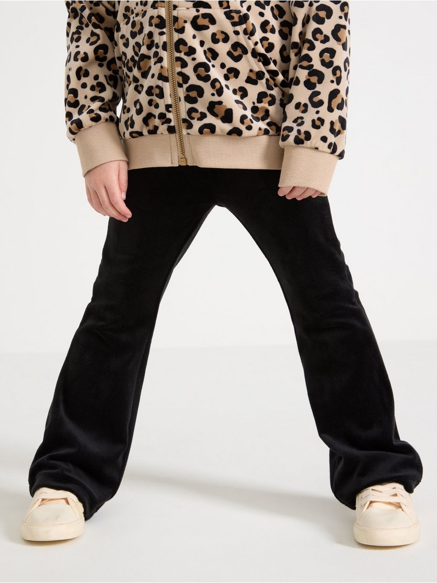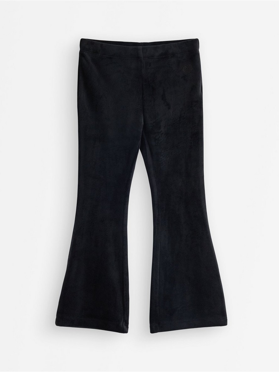Mekane tajice od velura sa podesivim elastičnim strukom i nogavicama na zvono.