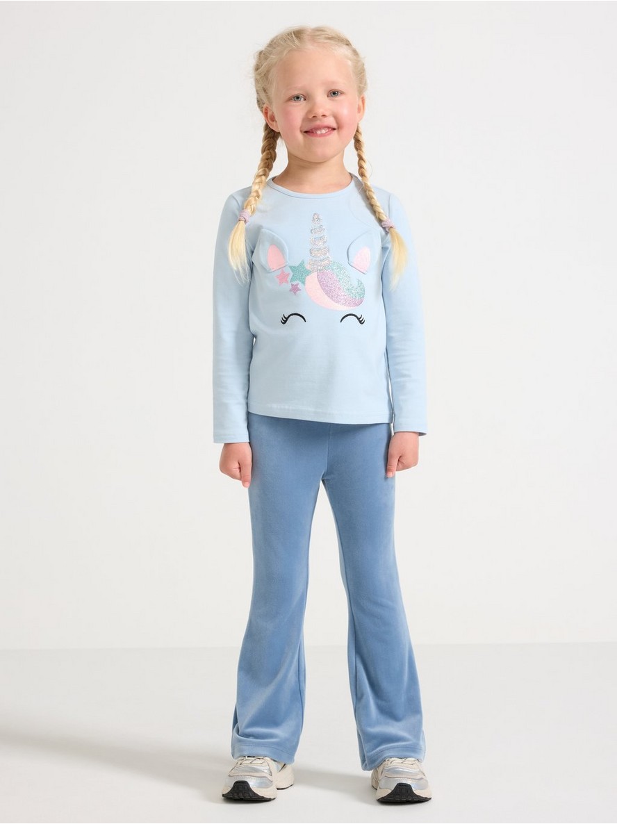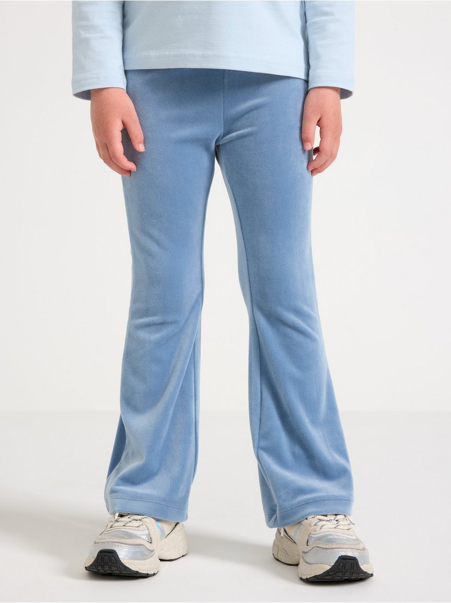 Mekane helanke od velura sa podesivim, elastičnim pojasom i zvonastim nogavicama.