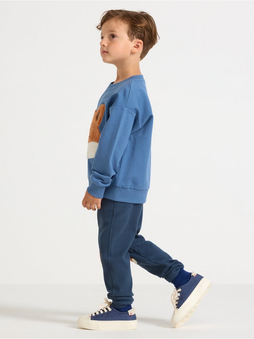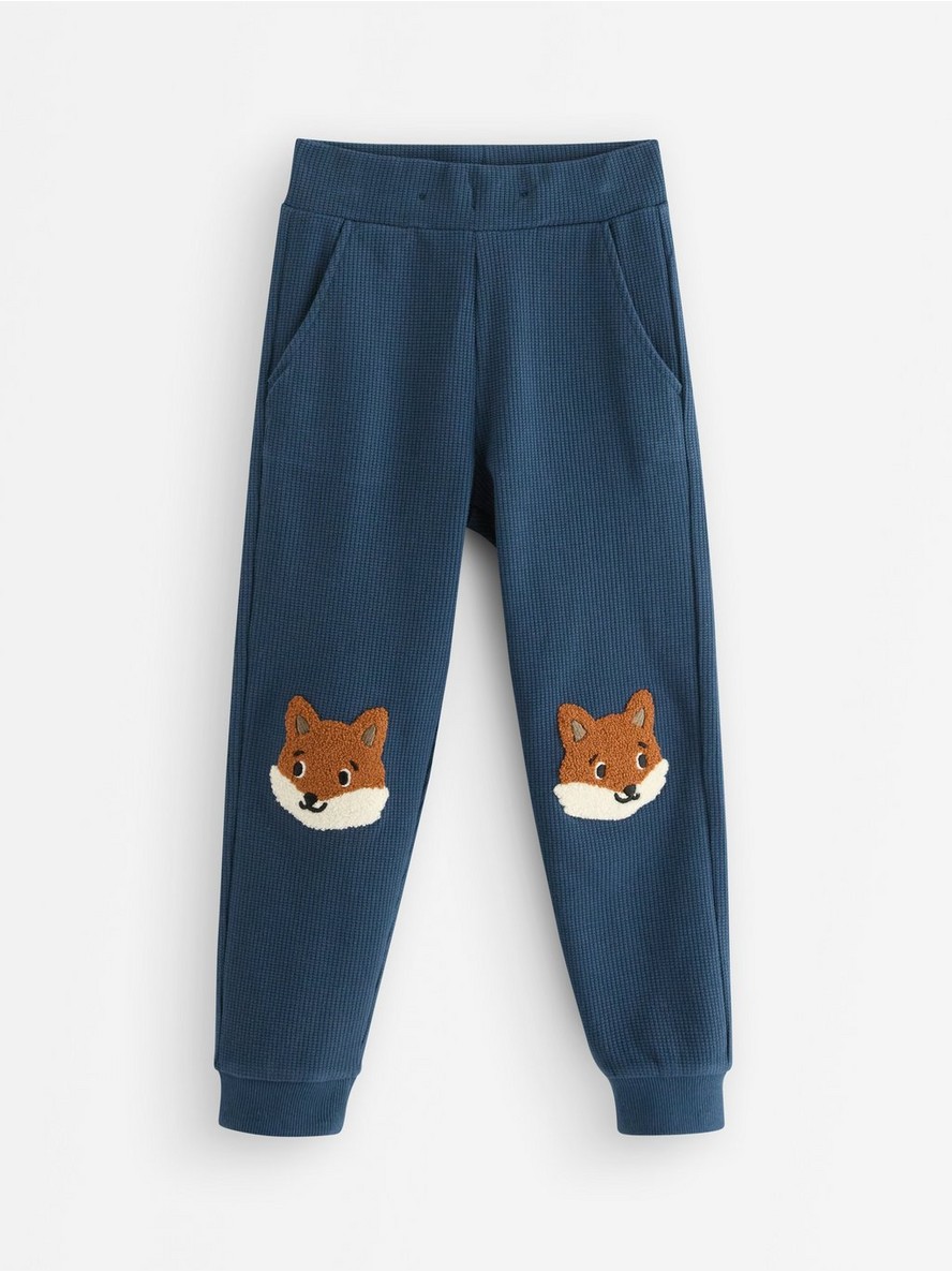 Džogeri od vafliranog pamuka sa aplikacijama na kolenima i podesivim strukom.