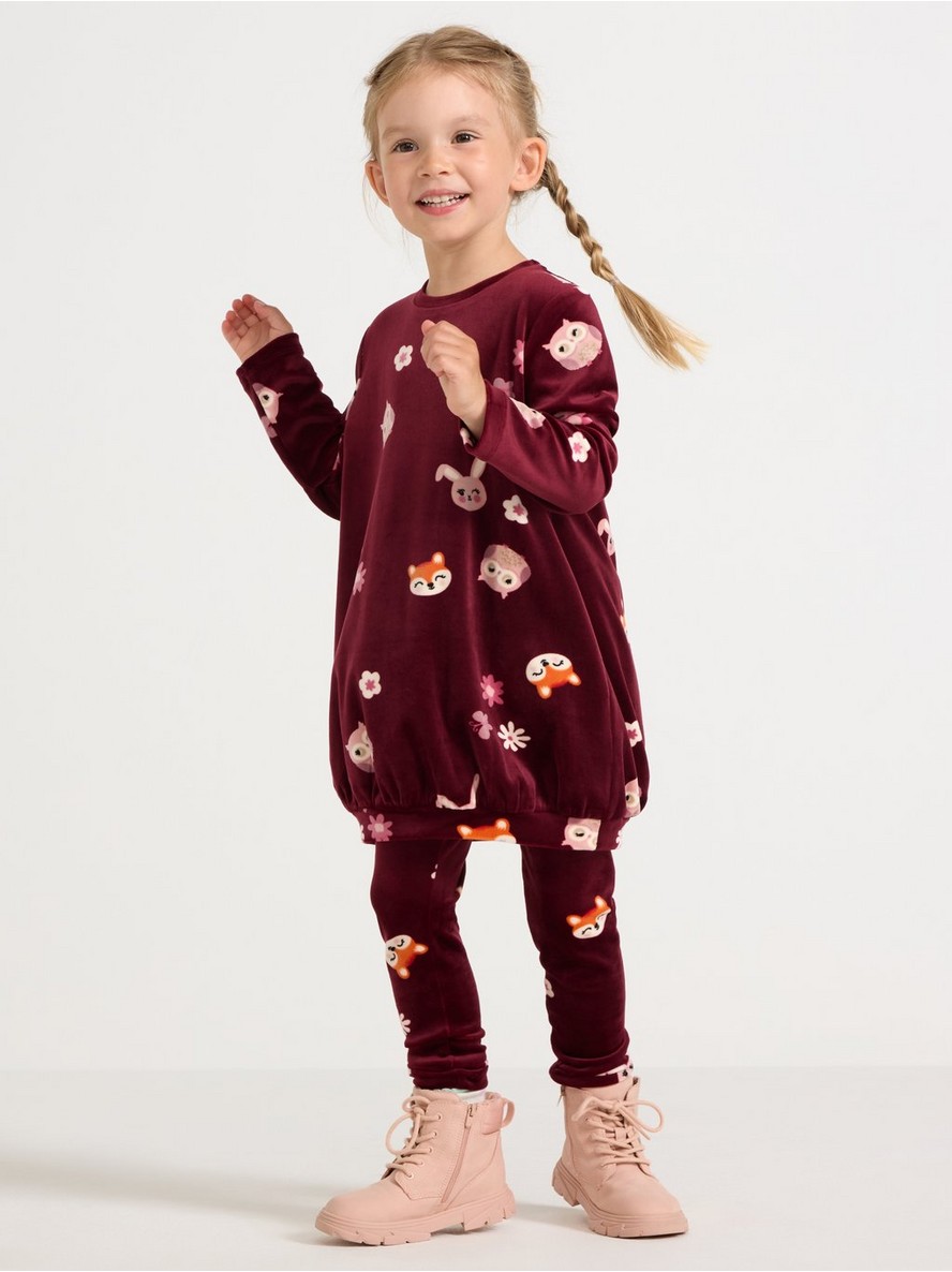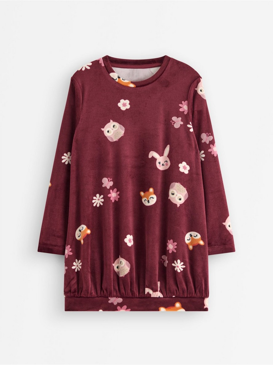 Mekana velur tunika sa dugim rukavima i okruglim izrezom.